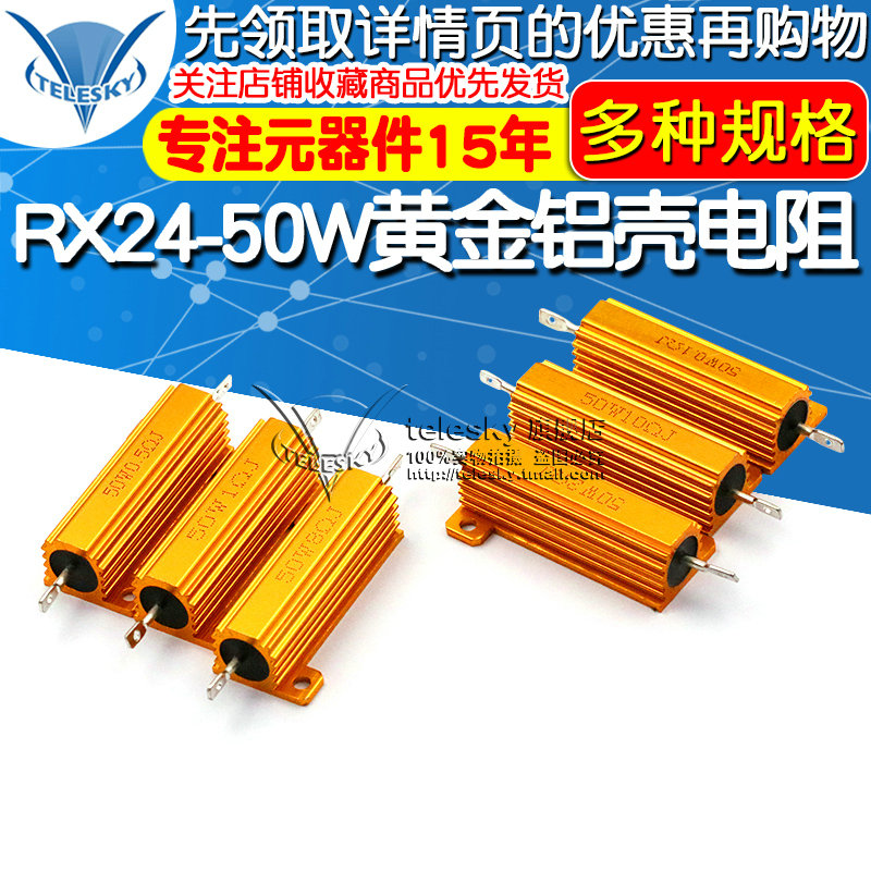 Heat dissipation resistor RX24-50W Gold aluminium shell High power resistance 0 1 1 5 50100 0 2K