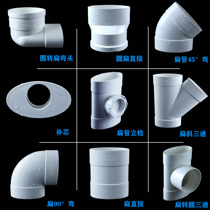 PVC110 flat pipe drainage sewerage displacement elbow flat tee heterodiameter elbow flat turning round direct flat accessory