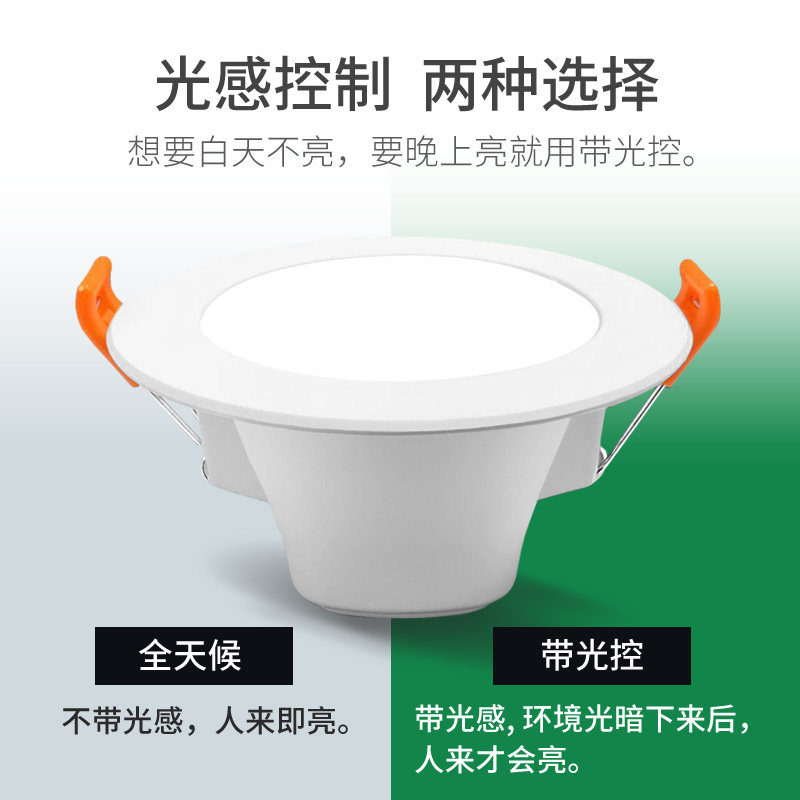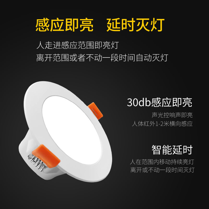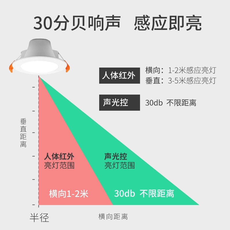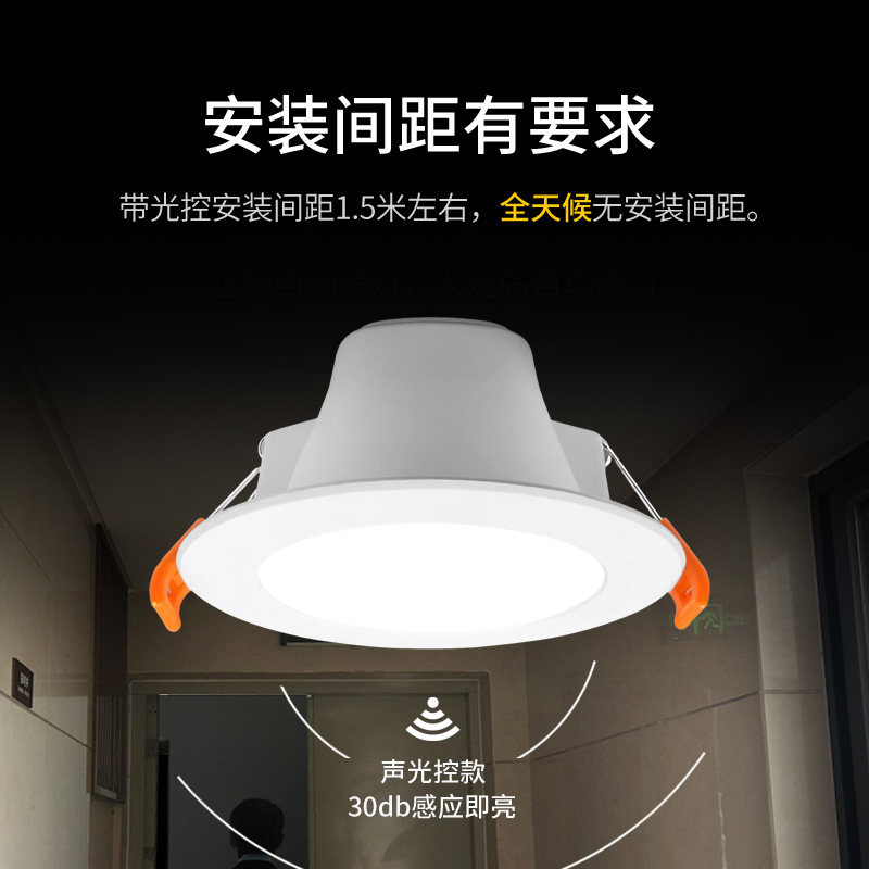 2 5 inch 5 W < acoustic control white light > with light control drilling hole 7 5-8 5cm 3 inch 7 W < sound control white light > with light control drilling hole 9 ~ 10cm 4 inch 9 W < voice control white light