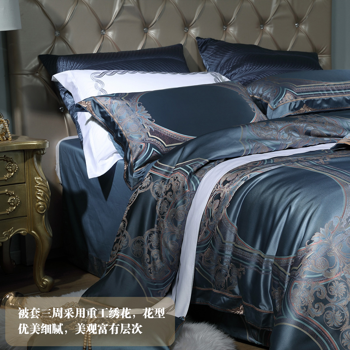 Mercury Home Textile European Satin Embroidery Flower Detailed Bed Lighted Luxury Single Twin Four Pieces Bed
