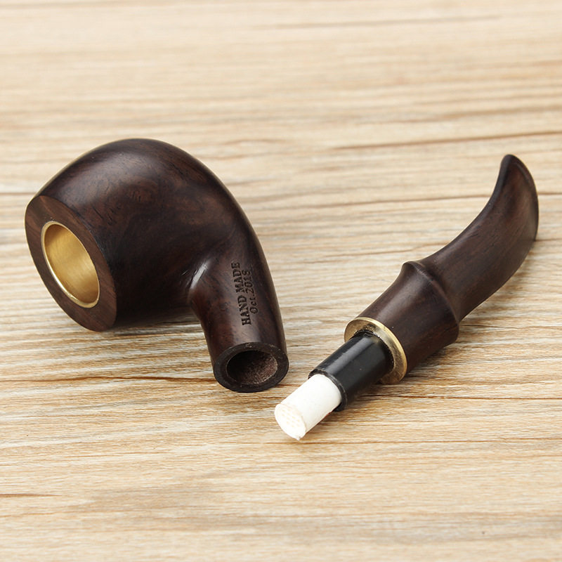 Black sandalwood tobacco fighting solid wood cigarette holder one bucket of three used tobacco smoke bucket with copper pot smoke bucket old-style tobacco-fighting bent whole wood