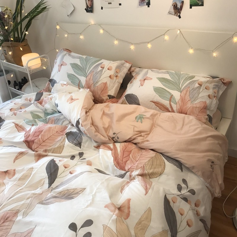 Soft ink large flowers combing cotton cotton four pieces of light American simple bedding accommodation beds