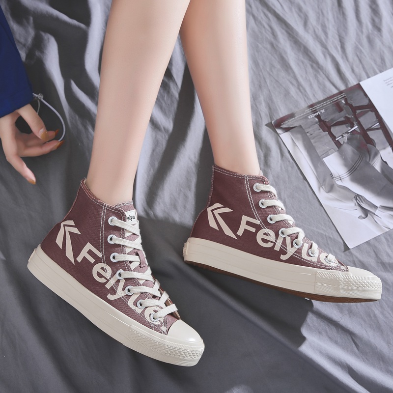 Feiyue Feiyue high-top shoes new Korean version of student shoes men's shoes women's shoes flat ins net red letter canvas shoes