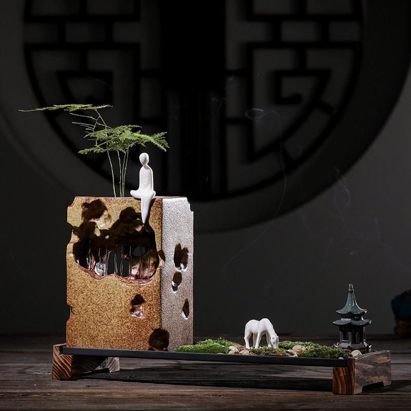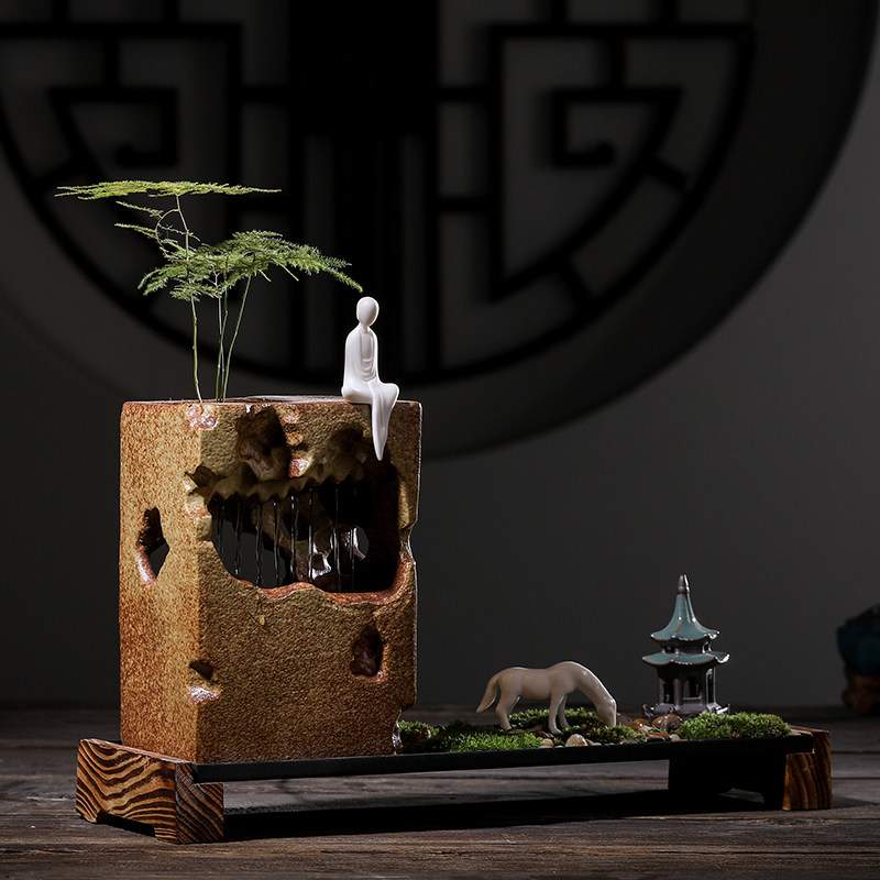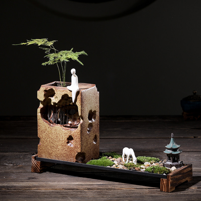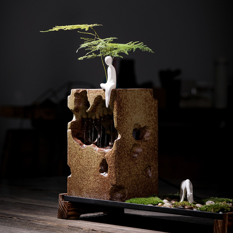 Pike home desktop water ornaments Zen new Chinese rockery humidifier creative Fengshui fortune soft decoration
