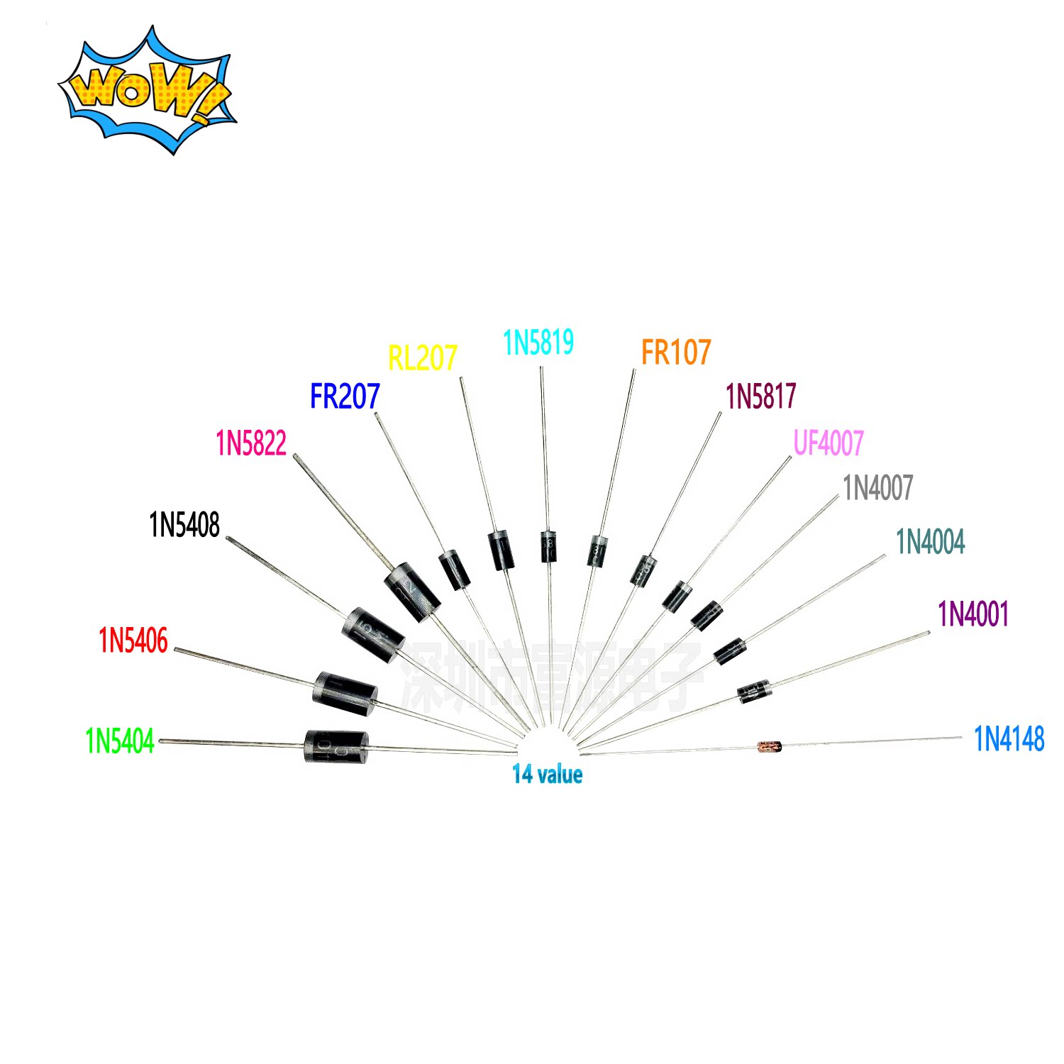 14 kinds of 200 diode sample packages 1N5404 6 8 01 4 7 FR107 RL207 UF4007, etc
