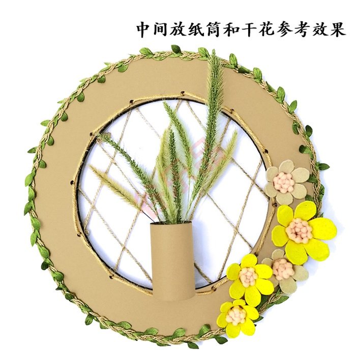 Net Red New Solid Green Leaf Hemp Rope Mesh Round Cardboard Frame Ring Creationist Material Teaching Bedroom Wall Hallway Pendant Hanging