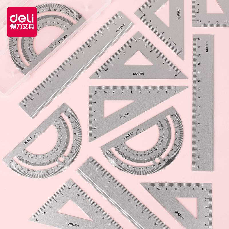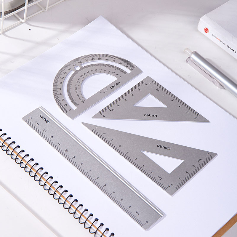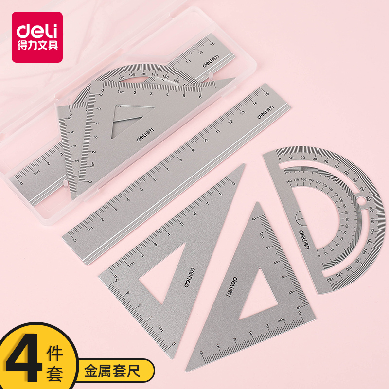 Able 79516 metal ruler four pieces of jacket for elementary school children with stationery South Korean minimalist cute wind aluminum alloy drawing examination whole set of Isosceles Triangle Ruler protractor Multi-functional ruler Set
