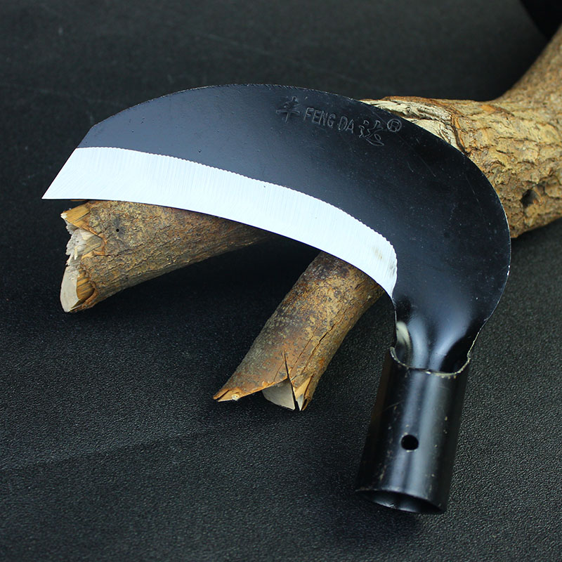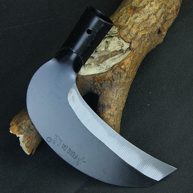 Outdoor sickle household mowing knife agricultural tools weeding large sickle long wooden handle machete sharp hook knife cutting kitchen knife