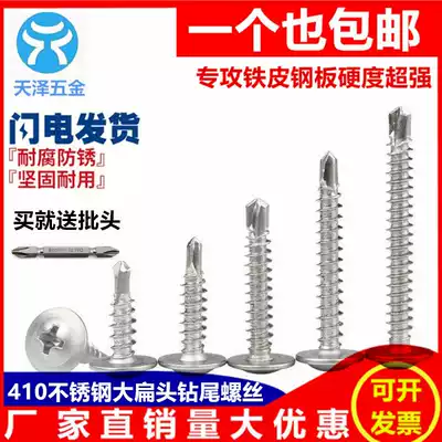 410 stainless steel cross large flat head drilling tail wire self-tapping self-drilling dovetail nail big round head Huasi screw