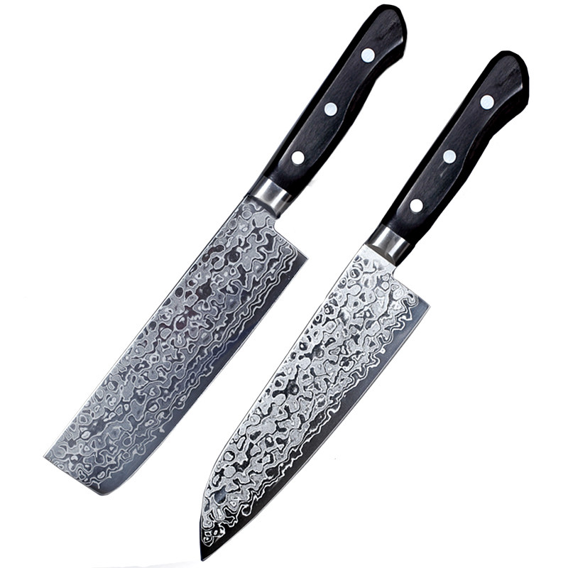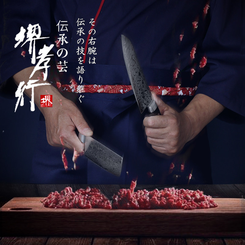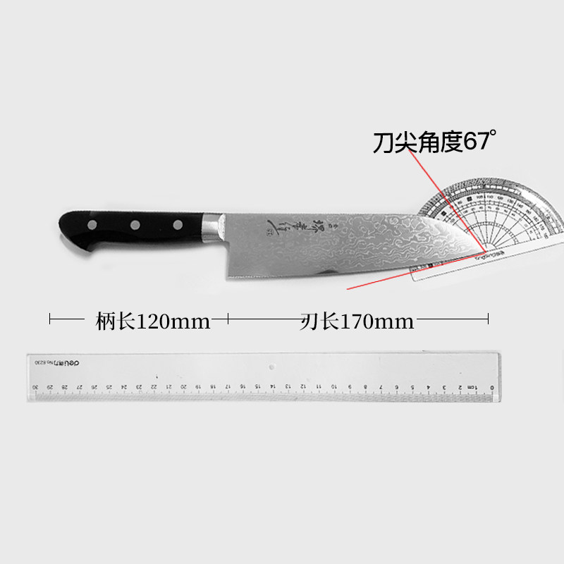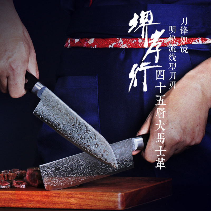 Japan imports Sakai Xiaoxing aus10 steel 45-layer Damascus mirror home kitchen vegetable cutting Santoku knife cutting meat