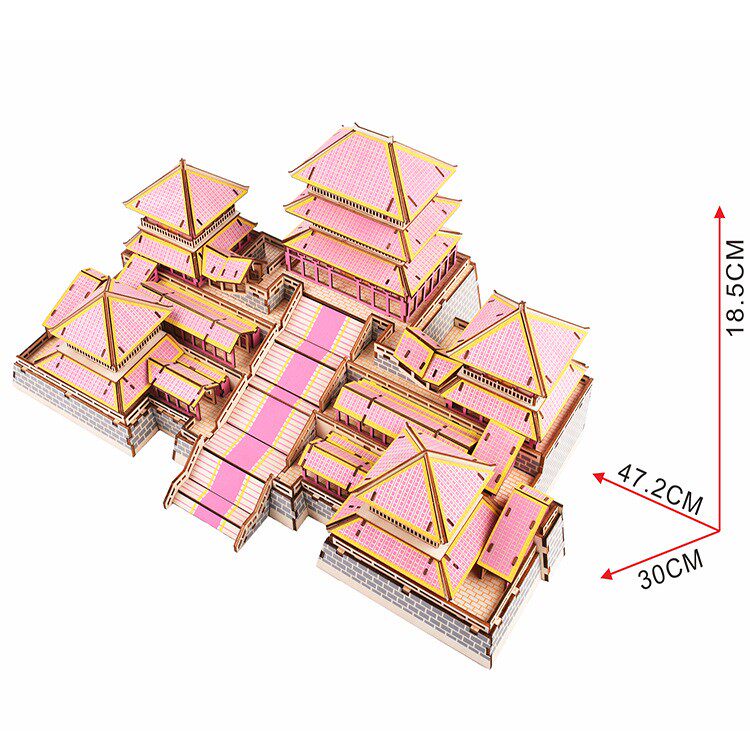 Wooden Assembled Toy Ancient Wind Building Model Diy Solid Puzzle Atrium Wooden Yellow Crane Building Creative Gift