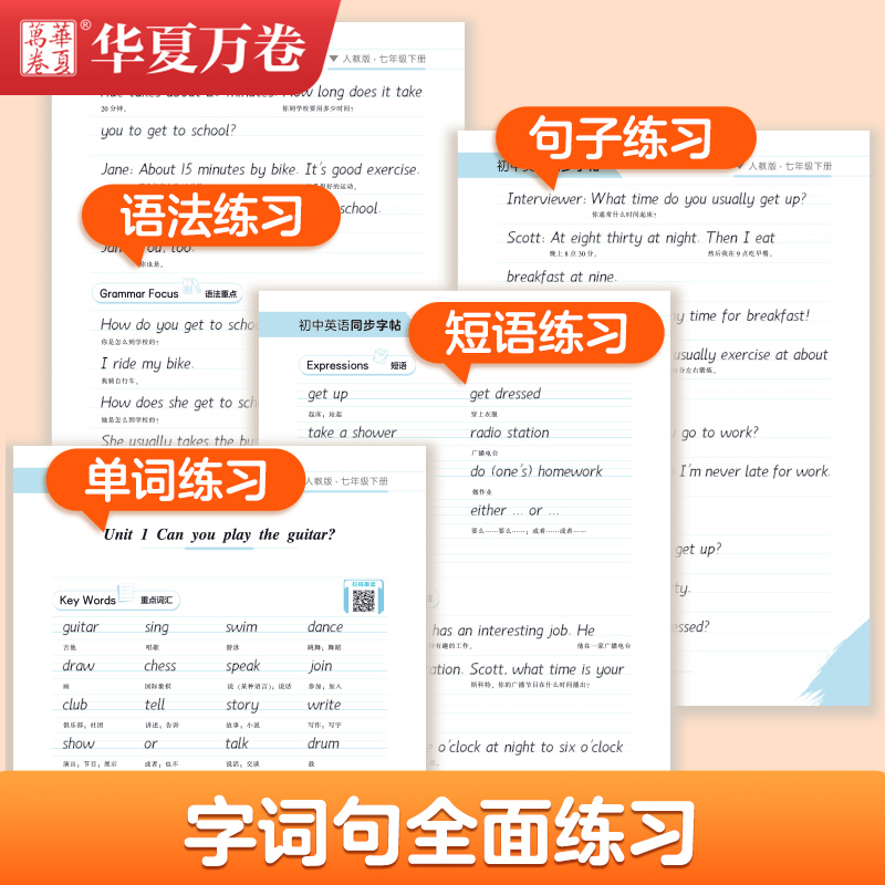 Hengshui Body English Word Huaxia Volume Junior High School Teaching Edition English Synchronization of English Words Seventh Grade Book English Words Text Text Students Practice English Words