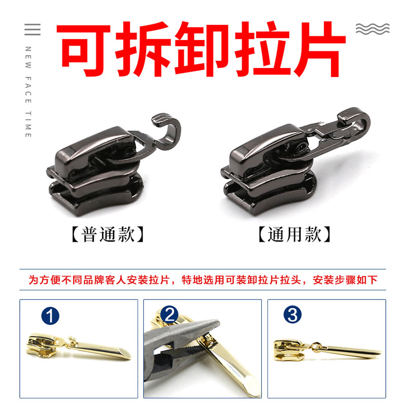 3 # (ordinary section) pull head 3 pull pieces 3 pieces (metal pull-in) 5 # (common section) pull head 3 pull pieces 3 pieces (metal pull necklace used) 8 # (common section) pull head 3