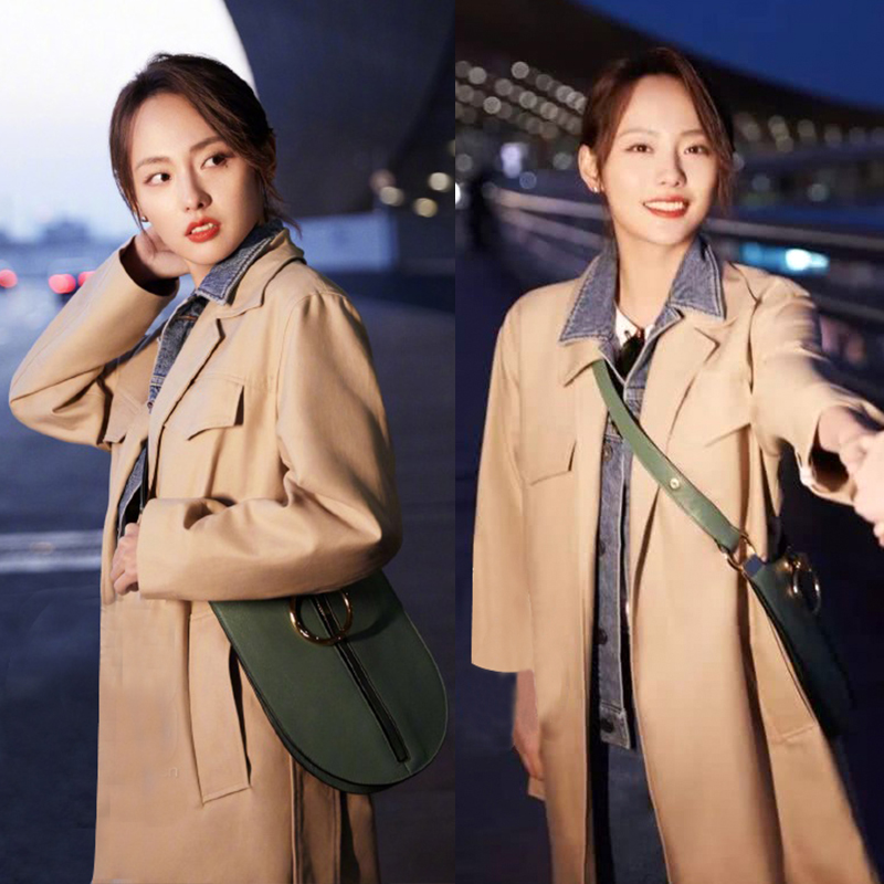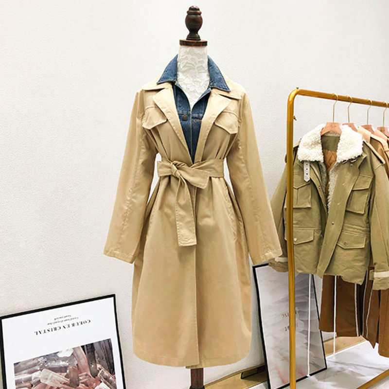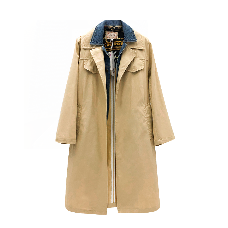 2022 Chunqiu Zhang Jia-ni Big S Tongan Cowboy Splicing Wind Coat Detachable Mid-Length Version Loose Large Size Coat Female