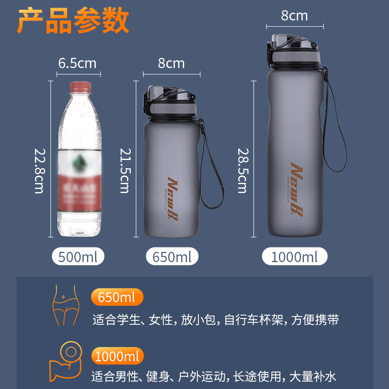 NewB Large capacity sports water cup Men portable outdoor gym Kettle bottle Female Student Drop scale plastic