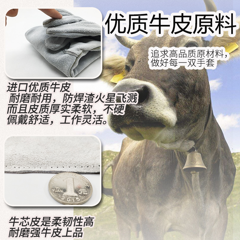 Welder's special soft cowhide long welding gloves wear-resistant soft anti-scalding thickened high temperature resistant labor protection gloves