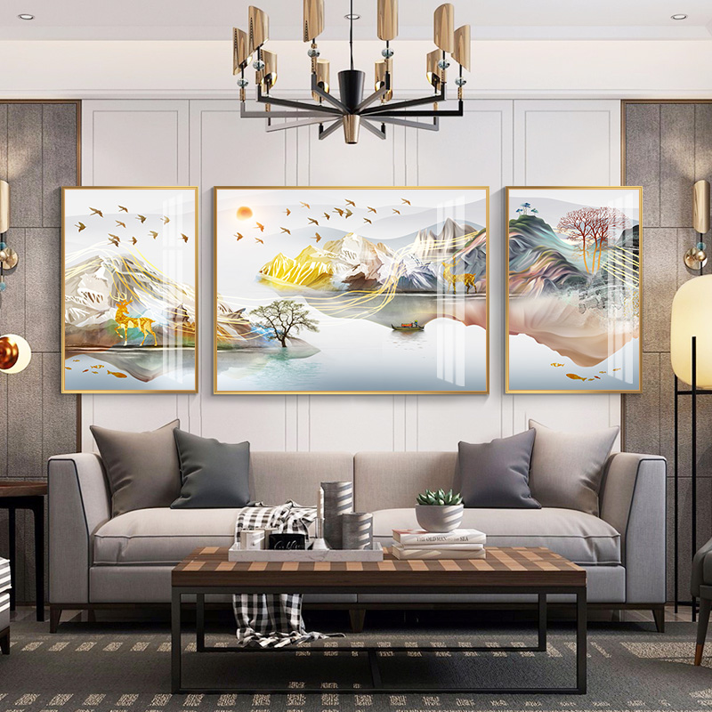 Modern minimalist living room decorative painting landscape landscape painting backer hanging painting sofa background wall elk bird mural