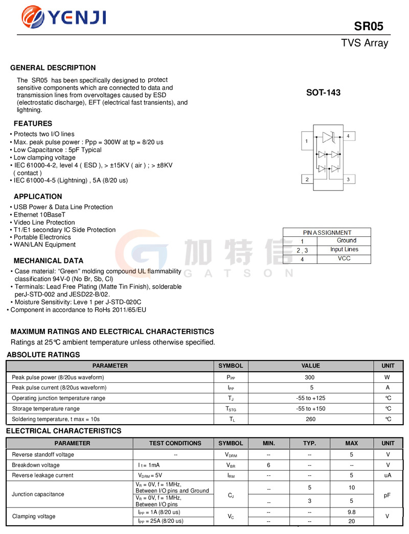 SR05 SOT-143 YENJI Taiwan Yuanji anti-static protection tube TVS transient suppression diode