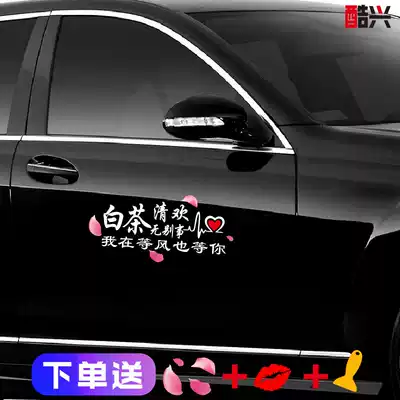 Net red car stickers white tea Qinghuan creative text door stickers rear glass decoration personality funny car stickers