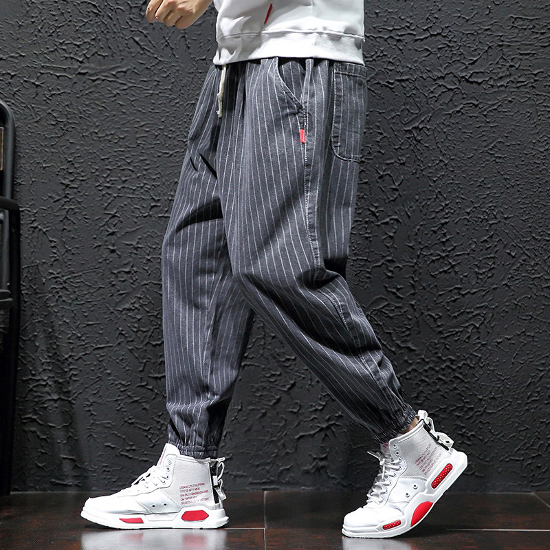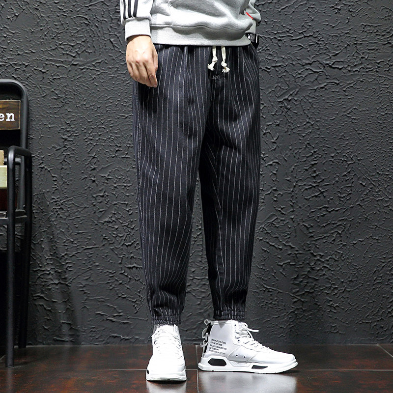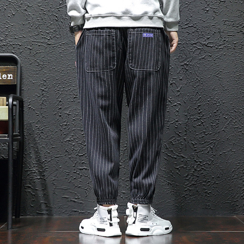 Port Wind Stripe 90% Jeans Man Pants Plus Fattening Overweight overweight people bunches 15-year-old boy Charenpants Harun pants