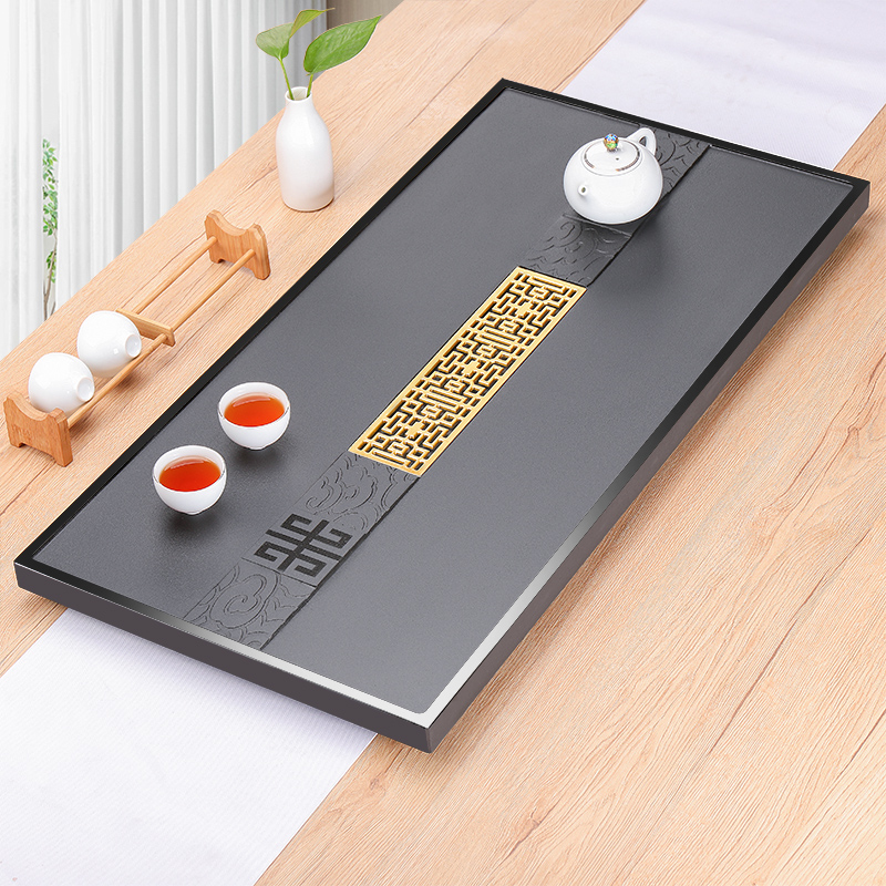 Natural whole Ukkim stone tea tray Home brief New Chinese black gold stone tea sea size No. stone stone tea table