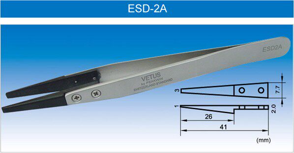 Original VETUS tweezers replaceable head ESD anti-static carbon fiber flat tweezers flat tweezers ESD-2A