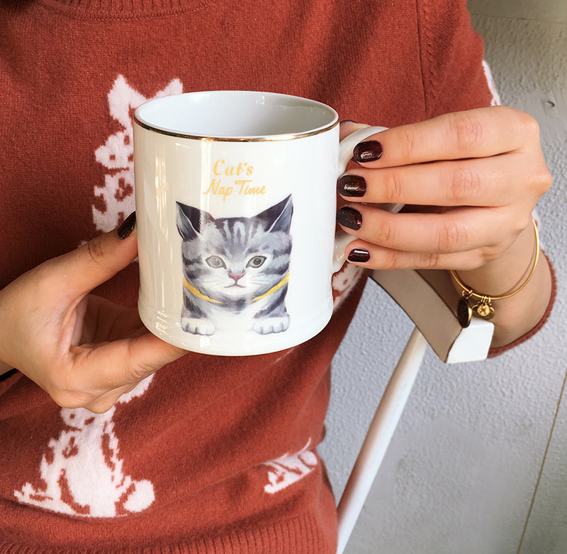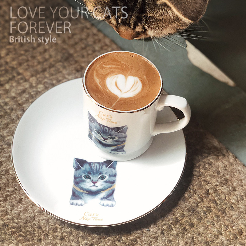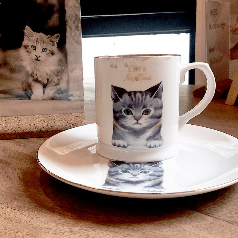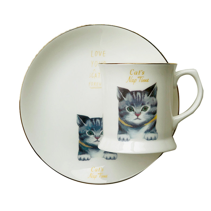 Life originally Nordic bone porcelain adorable cat Mack cup coffee cup small dinner plate breakfast dish to send girl gifts