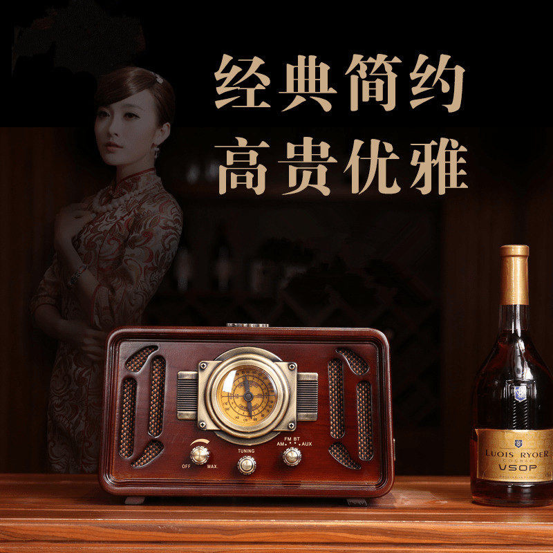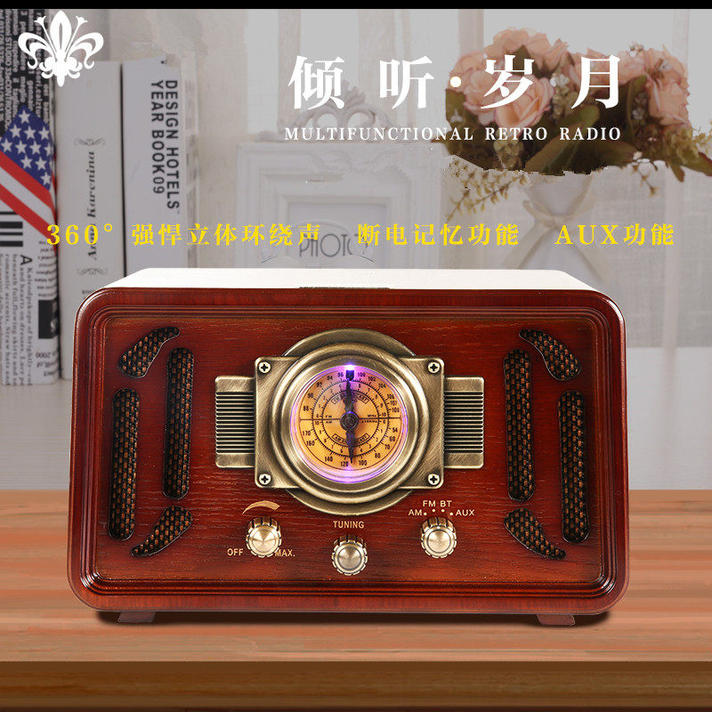European classic retro bluetooth speaker subwoofer high volume 3d surround sound wood FM radio