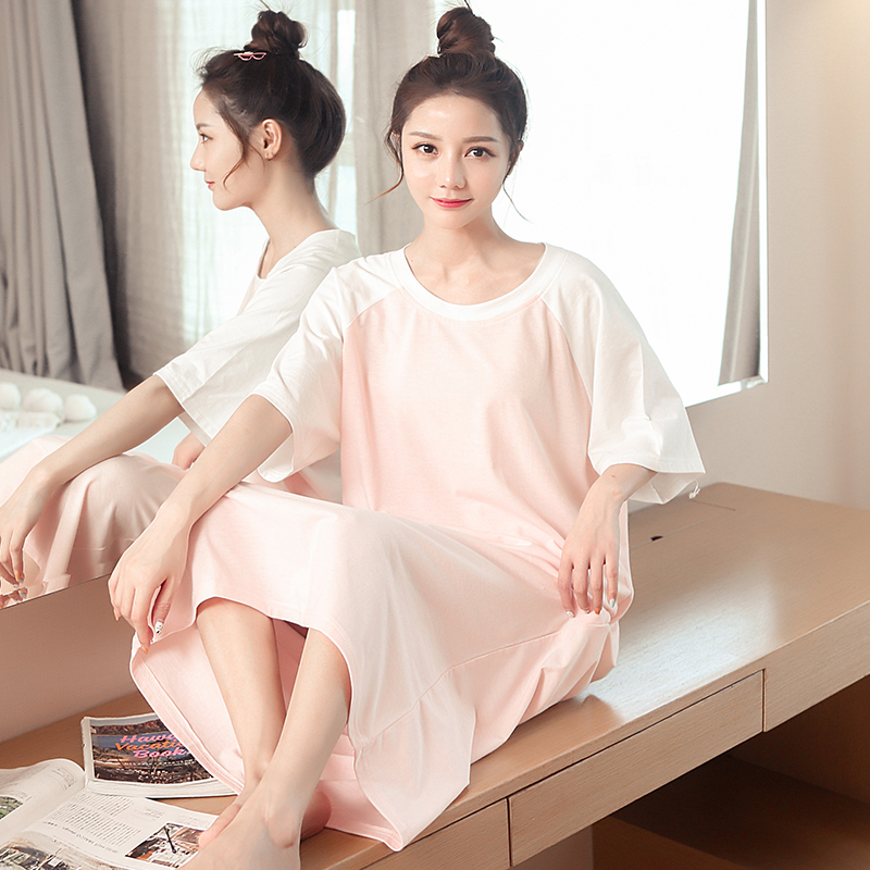 Add Fat Yard Sleeping Dress Long Version Woman Over Knee Fat MM Loose Pregnant Woman Pure Cotton Pyjamas Summer Thin dress