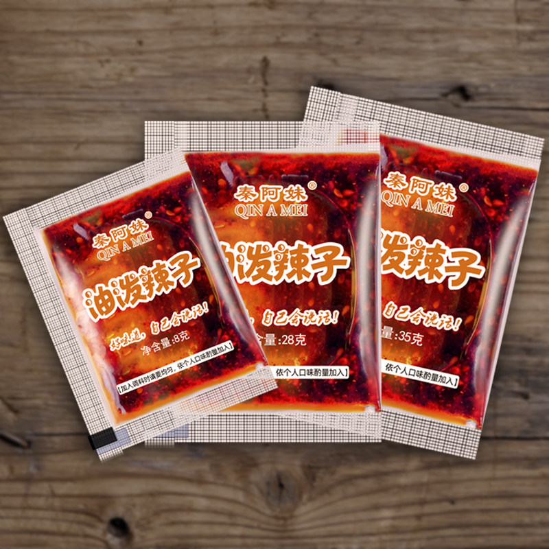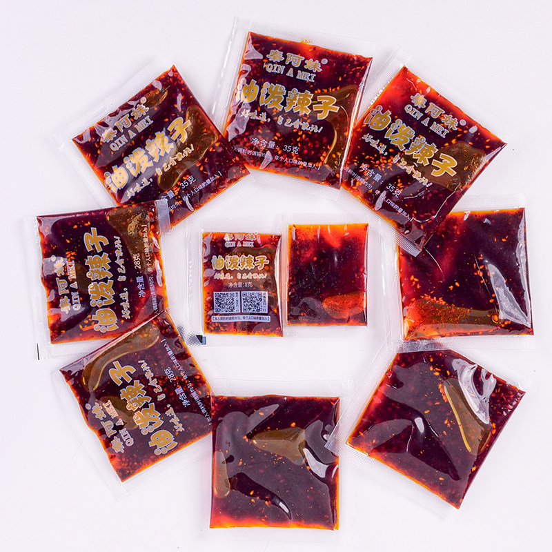 Chili oil seasoning Spicy oil Spicy seed mixed vegetable noodles Commercial hot and sour pink oil seasoning 35g X20 packets