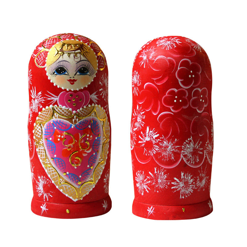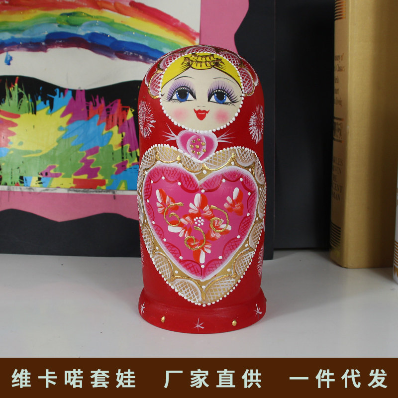 Matryoshka 10-layer basswood heart-shaped girl handmade color-changing gift birthday gift ten-layer Russian nesting doll