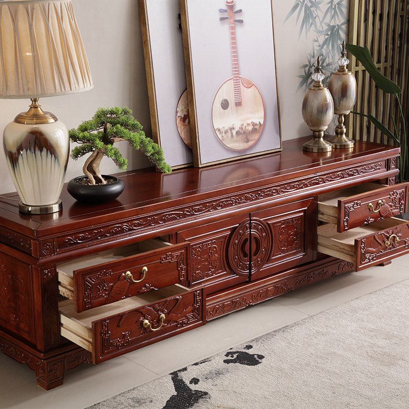 New Chinese solid wood TV cabinet camphor wood floor cabinet storage cabinet modern antique carved living room mahogany furniture