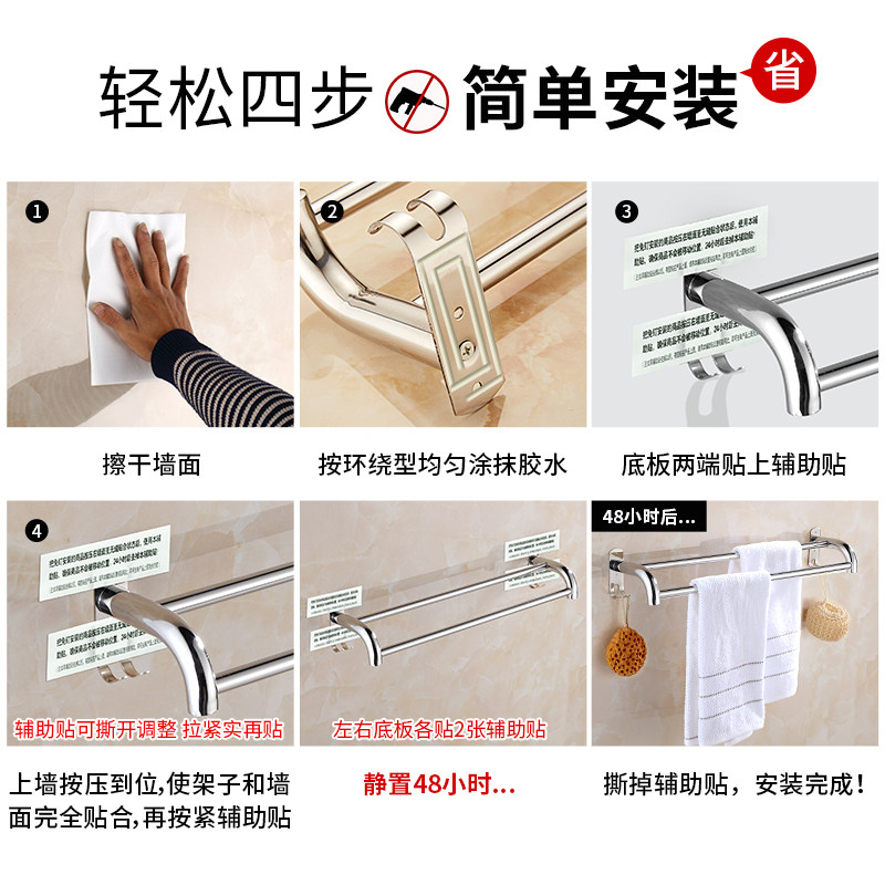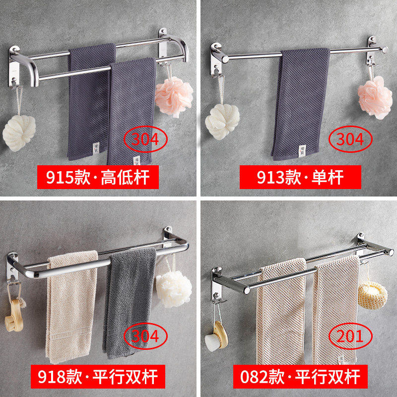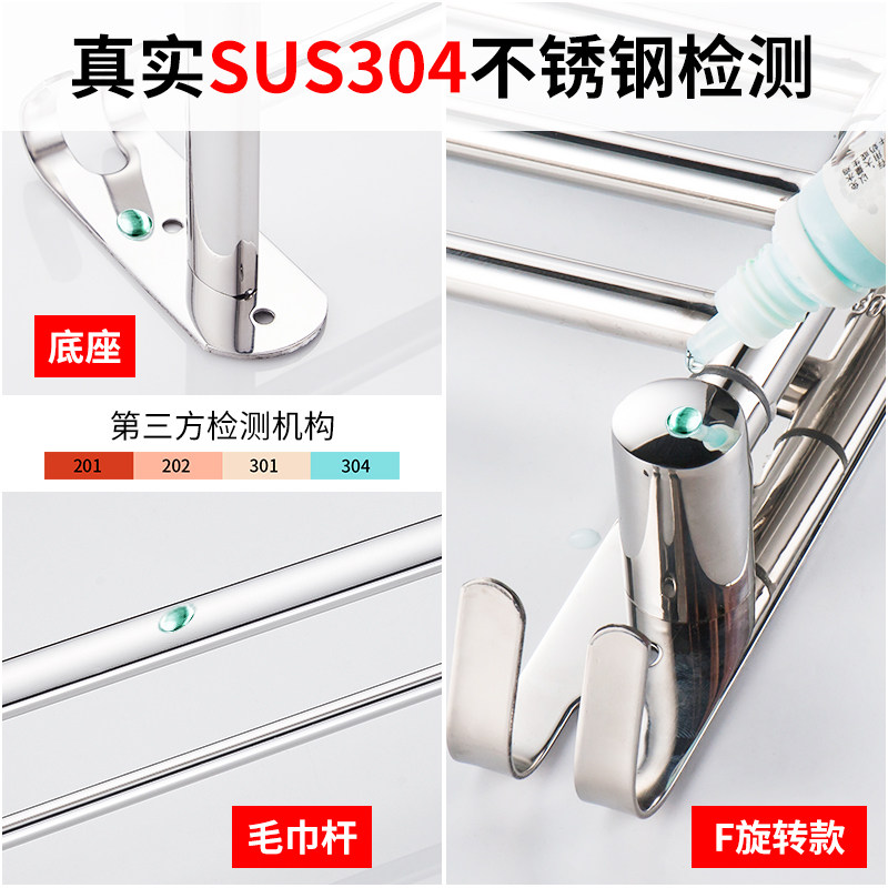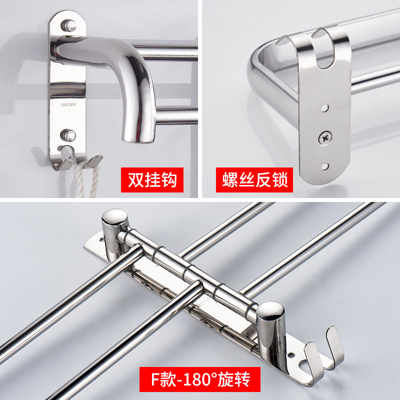Hanging towel rack free punch toilet single pole 304 stainless steel shelf toilet bathroom folding rotating multi-bar