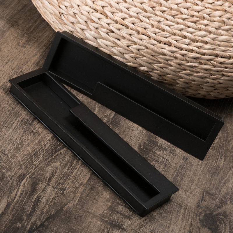 Hole distance 128192m m black recessed clothing cabinet door pair with flat handle black gold gray moving door concealed handle