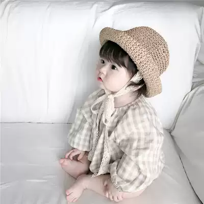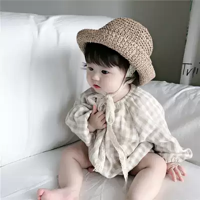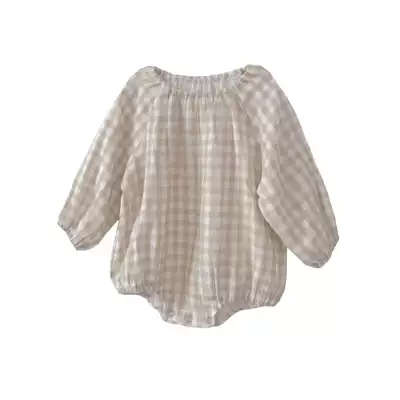 2021 spring and autumn Korean children's clothing baby jumpsuit men and women baby long-sleeved plaid climbing suit loose baby jumpsuit