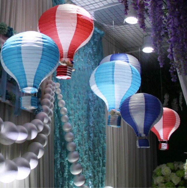 Hot air balloon No. 1 is 30cm high and 25cm wide Hot air balloon No. 2 is 38cm high and 32cm wide Hot air balloon No. 3 is 45cm high and 38cm wide Hot air balloon No. 4 is 60cm high and 48cm wide