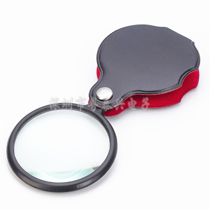 Folding leather case magnifying glass Optical glass lens Pocket mirror Convenient expansion mirror 10 times the elderly read and read newspapers