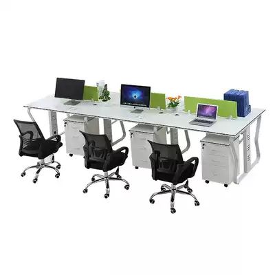 Simple modern desk 4 employees desk card position computer desk screen staff 6 people Office table and chair