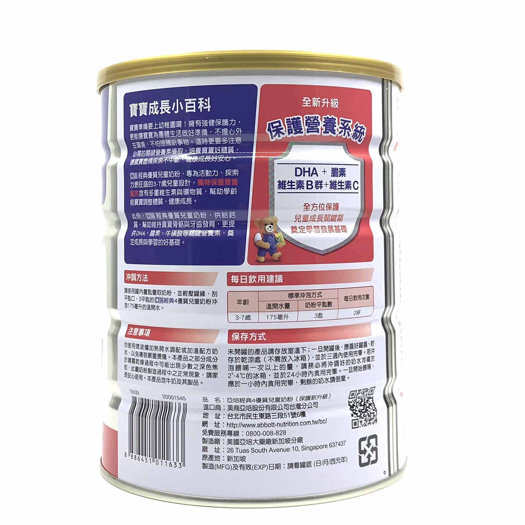 Taiwan Apei classic 4 - stage high - quality children's milk powder 850 grams 3 - 7 years old Singapore original import
