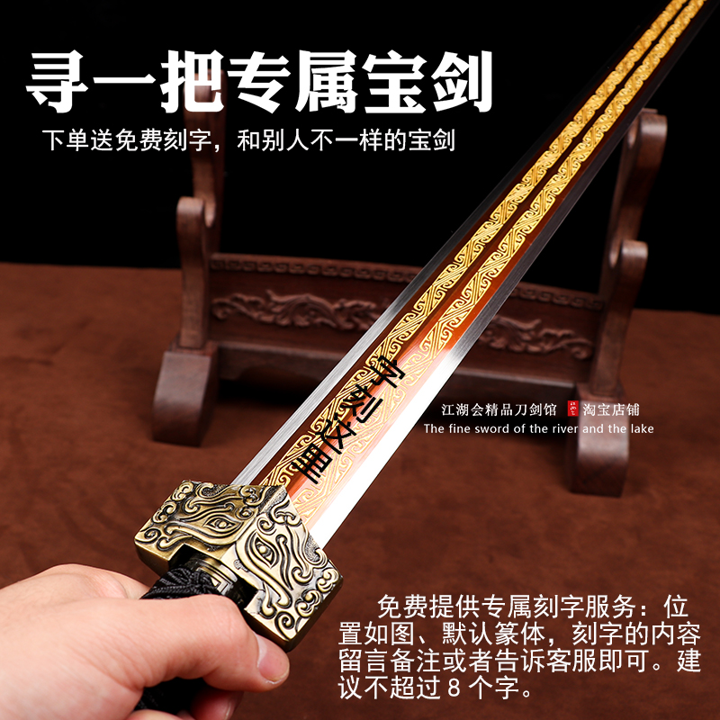 Long version of the Han sword Qin Jianjian Longquan Town Residence Integrated Hard Sword Eight Faces Treasure Sword Pure Handmade Sword Cold Soldier Unopened Blade