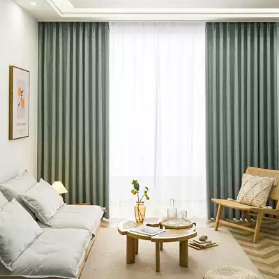 Nordic modern Japanese light luxury retro thick jacquard chenille blackout custom living room bedroom curtain plain