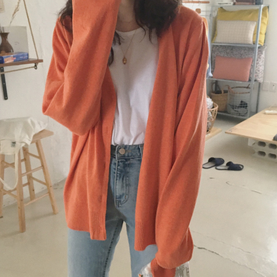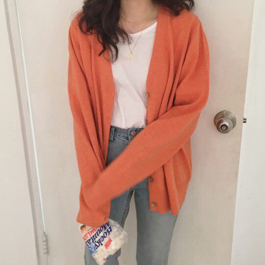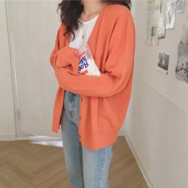2021 Autumn Dress New Women's Clothing Loot LAZY GENTLE WIND V COLLAR ORANGE SWEATER JACKET KNIT CARDIOVERT BLOUSE