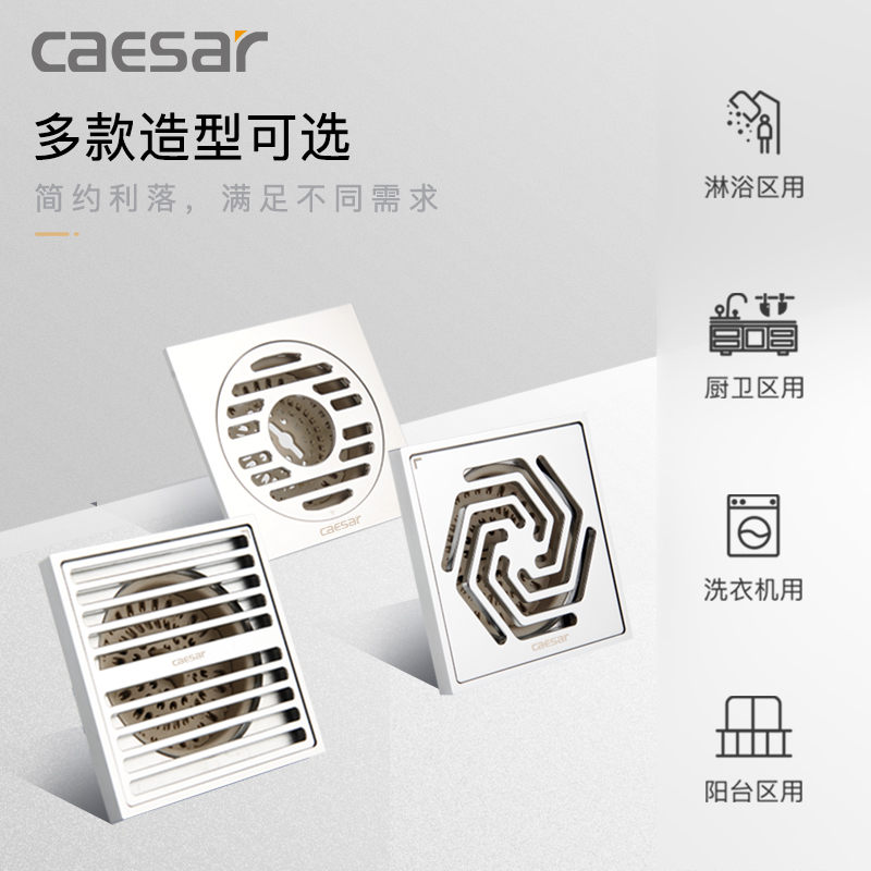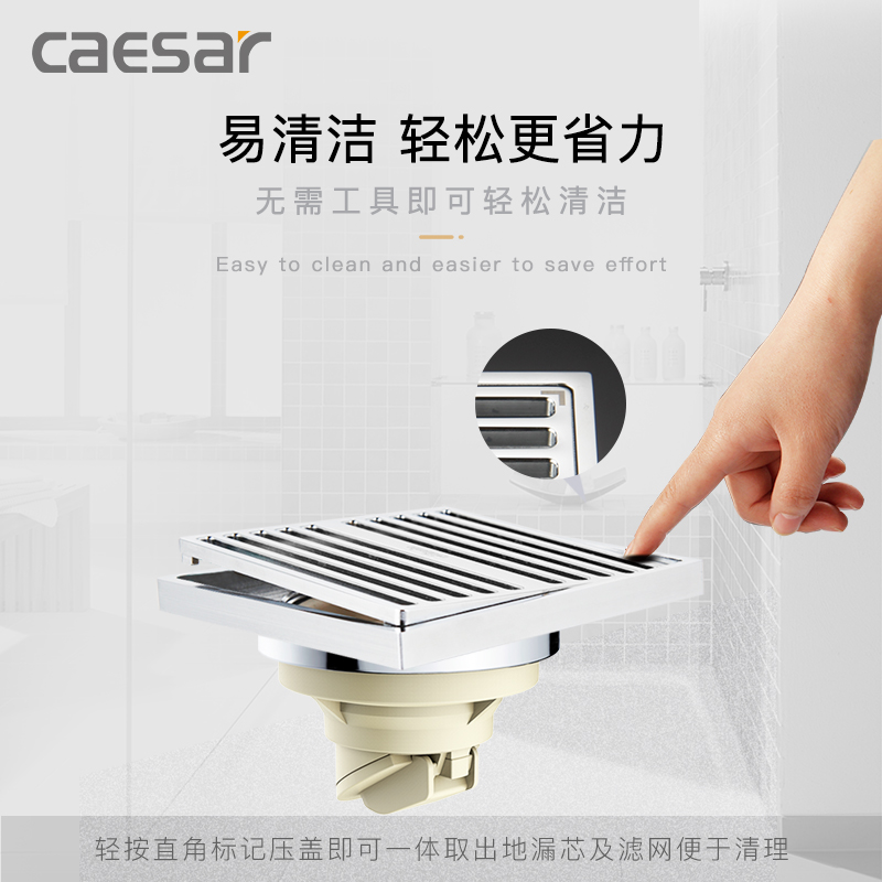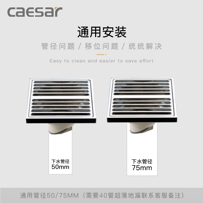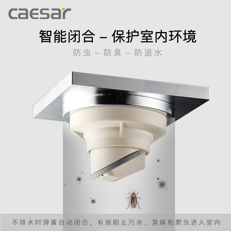 Caesar all copper floor drain deodorizer Powder room washing machine drain pipe dual-use square large displacement anti-return water special