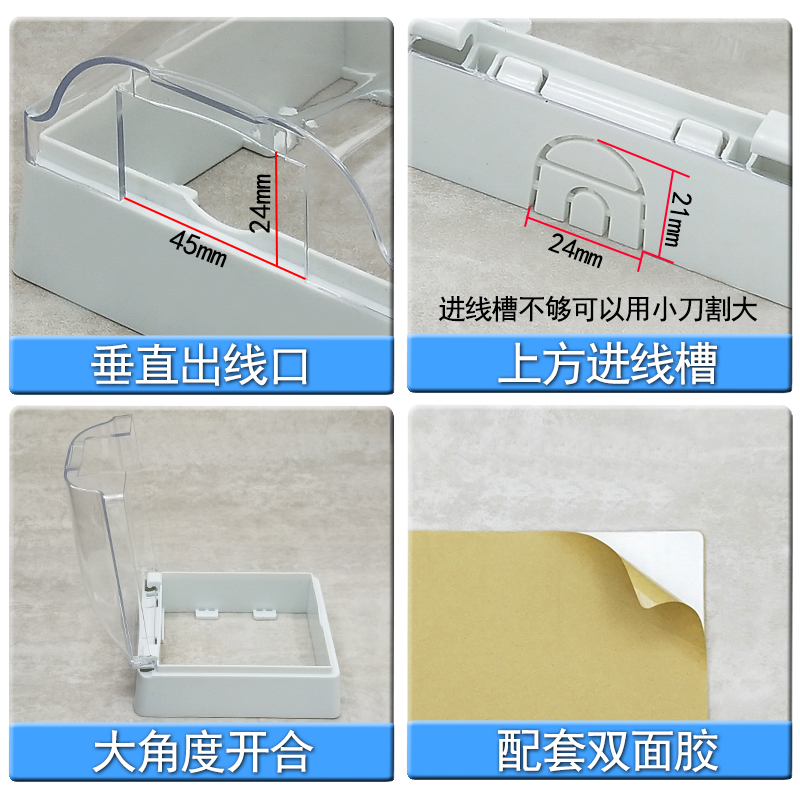 Transparent 86 type Ming-fit self-adhesive switch socket bathroom protection cover splash mask make-up room Ming line waterproof case