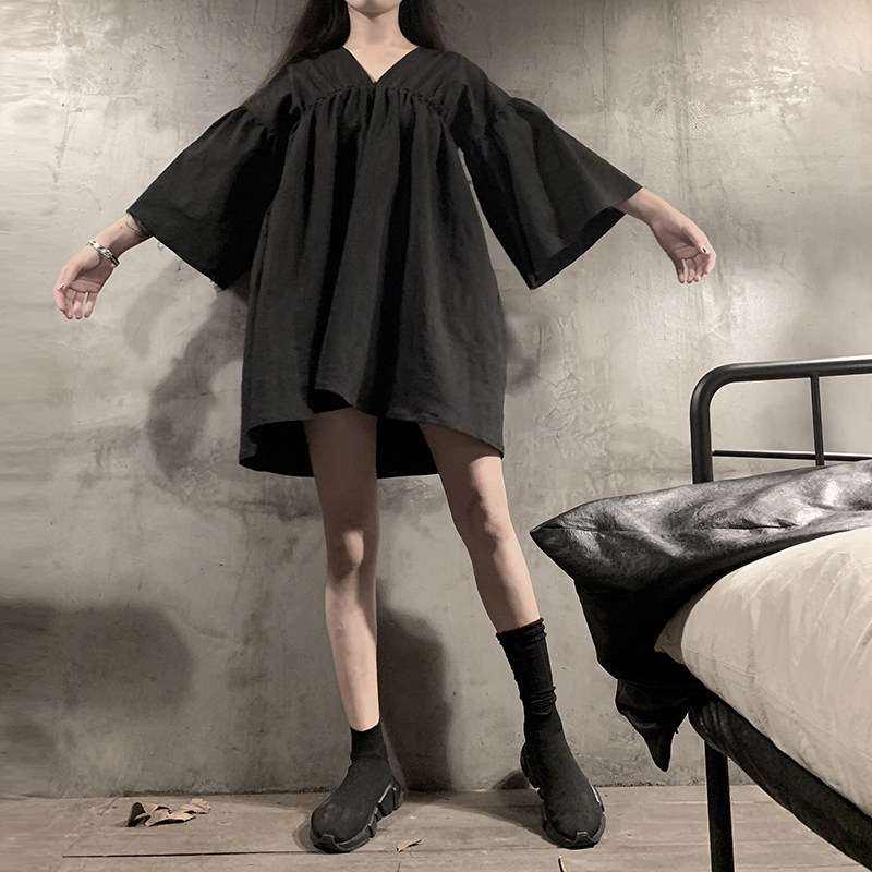 Bloody Star fishy original designer Little crowdsourced dark black family doll mid-length skirt V collar loose for women's clothing