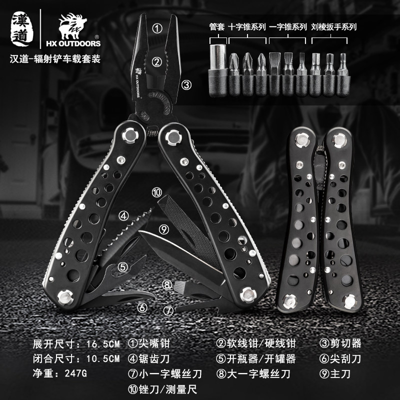 Multifunctional car outdoor camping equipment supplies folding combination knife portable suit field survival toolbox