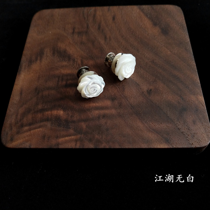 Natural White Shell Rose Flowers Small Brooch Button 100 lap shirt neckline Anti-walk light Don't button upscale collar female