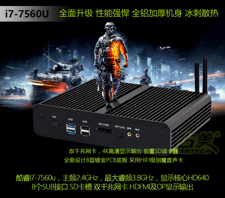 Zhanmei Core i7-4500U I7 7560U fanless mini computer mini host small host HTPC