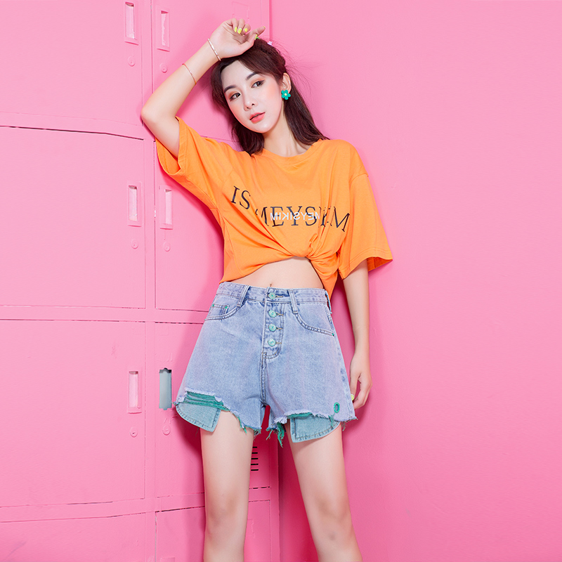 High waist dash Hole Cowboy Shorts Women Summer Thin 2022 New a new A character slim loose wide leg hot pants Chains