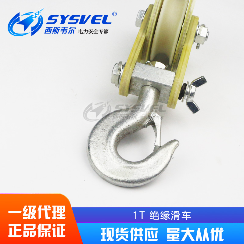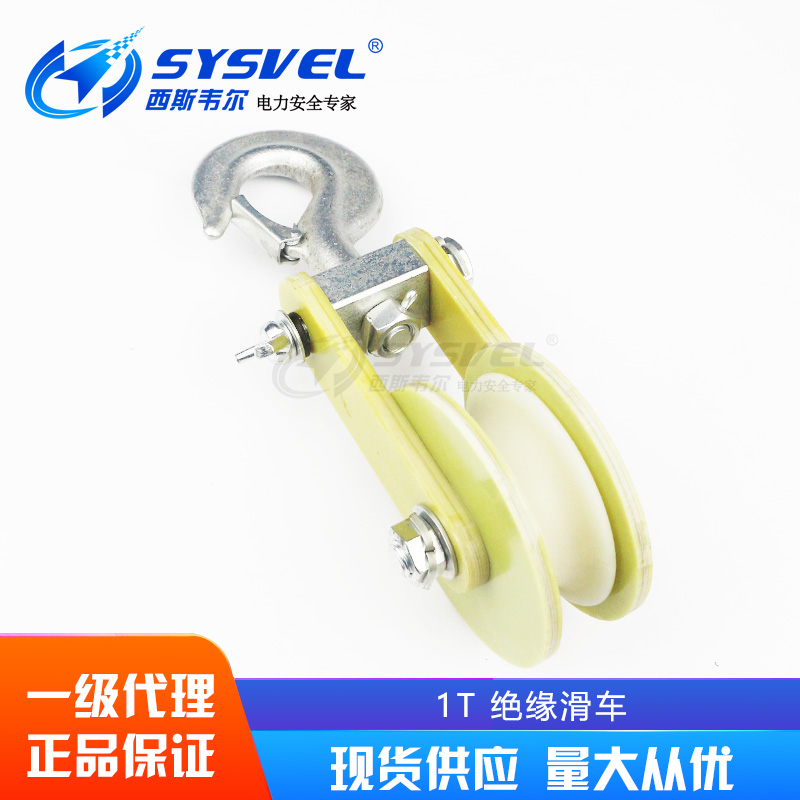 1 ton small wheel insulation pulley double insurance insulation pulley insulation belt hook double row wheel lifting pulley